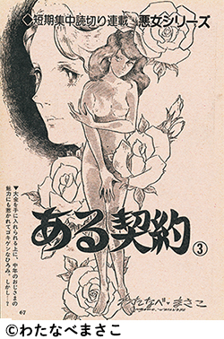 週刊明星/集英社 | 13(3/30)号〜16(4/20)号 ☆ | 4回連載 | YJC『悪女2 ある契約』1981年、集英社漫画文庫『悪女2 ある契約』1984年、名作集『悪女2 蜜の味』1993年 |